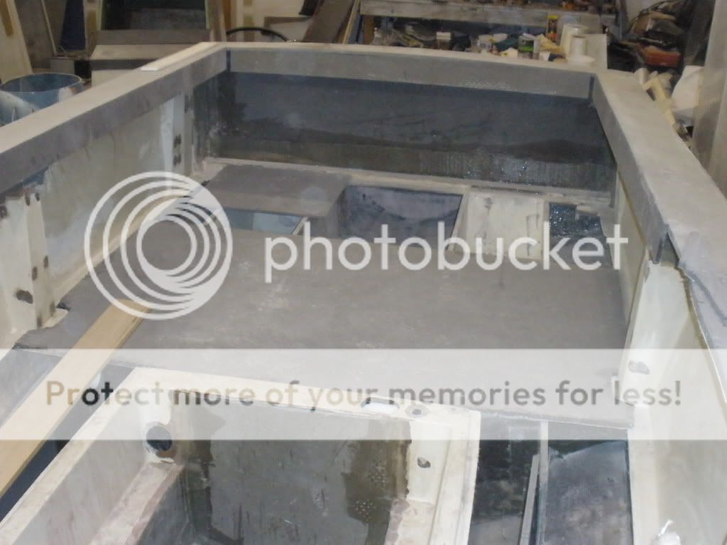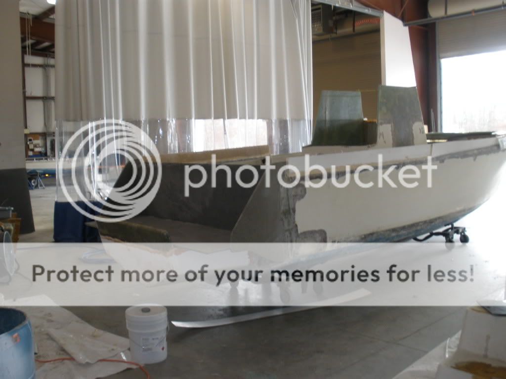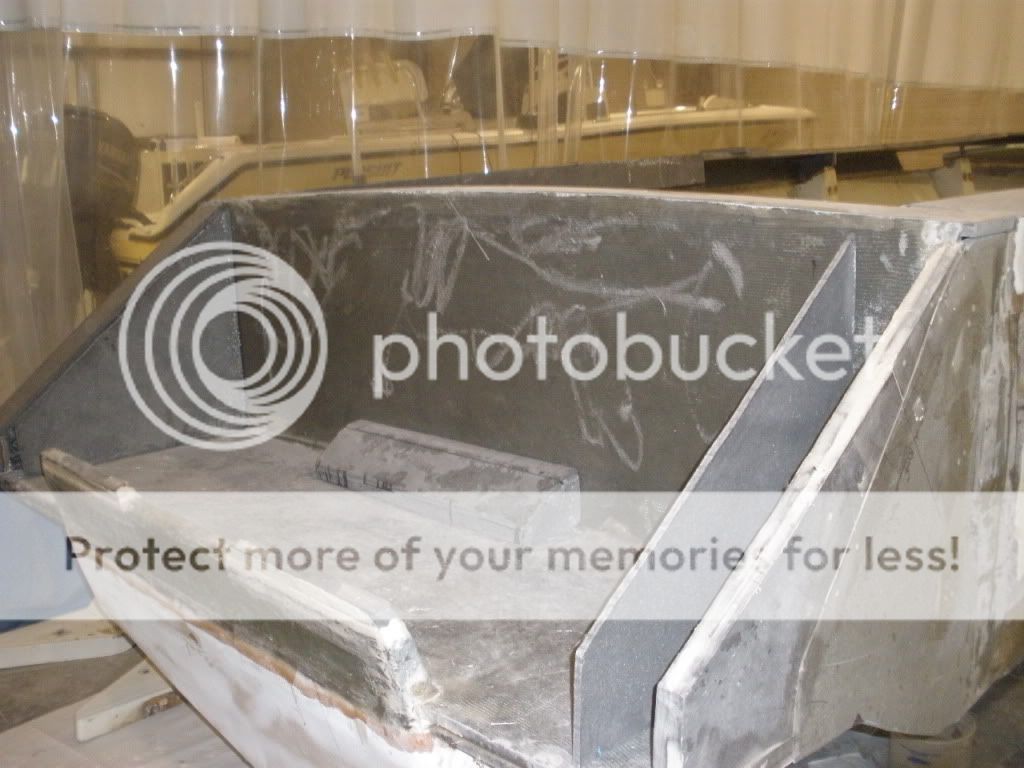 And you thought you had your hands full this winter! Look below and think again! Everyone who has seen this boat just shakes their head as they walk by. My dad has been working on this boat all winter and its finally starting to look good. Nobody in their right mind would ever think of taking a project like this on. My dad with his creative mind decided that since he retired he would build a boat to suit his needs. We took a proven bottom the one that started it all such as regulator contender seavee rampone just to name a few. We never really knew what the bow was going to look like til it just started coming together. Enjoy I will try to keep the pics coming. The whole boat was gutted down to the hull. New coosaboard stringers installed. Everything is made out of coosaboard, vinylester resin and 1708 and 1808 glass. All quality materials to build a boat to last a lifetime. Oh and I forgot to mention we have two 250hp yamaha OX66 outboards to install we're taking a poll on what she'll do. I'm guessing 70, 71 mph when propped right and trimmed but mid 60's easy.